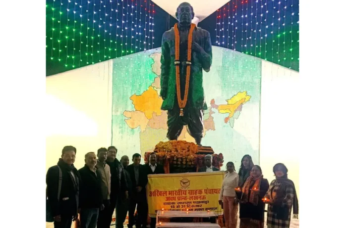 लखनऊ/सर्वोदय न्यूज़:– अखिल भारतीय ग्राहक पंचायत अवध प्रांत के कार्यकर्ताओं ने आज 15 दिसंबर 2025 को राजधानी लखनऊ के प्रमुख बाजार हजरतगंज में राष्ट्रपिता महात्मा गांधी एवं लौह पुरुष सरदार वल्लभभाई पटेल की प्रतिमाओं पर दीप प्रज्वलित कर ग्राहक जागरूकता पखवाड़े का विधिवत शुभारंभ किया।