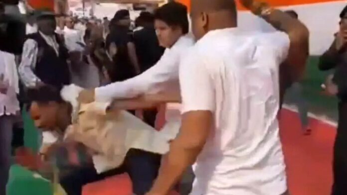 सर्वोदय/ बिहार:- कांग्रेस नेता राहुल गांधी बिहार दौरे पर हैं। उनकी यात्रा के बीच कांग्रेस के नेता आपस में भिड़े- वीडियो सोशल मीडिया पर वायरल , वीडियो में रीगा के पूर्व कांग्रेस विधायक टुन्ना सिंह किसी कांग्रेस कार्यकर्ता को दौड़ाते हुए नजर आ रहे हैं।इस दौरान सदाकत आश्रम परिसर में ही दोनों गिर जाते हैं फिर पूर्व विधायक भाग रहे युवक को पीटने लगते हैं। इस दौरान बिहार कांग्रेस के पूर्व प्रदेश अध्यक्ष व राज्यसभा सदस्य अखिलेश प्रसाद सिंह गेट के बाहर थे।