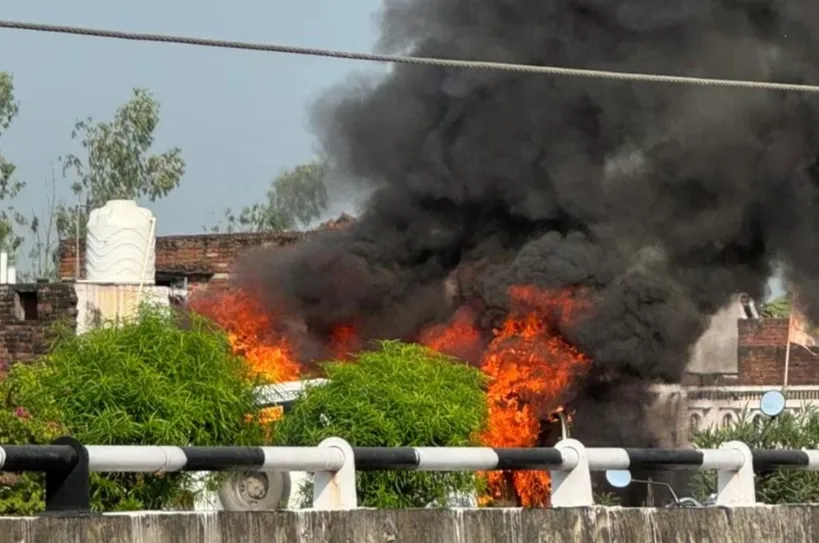 गोरखपुर: शॉर्ट सर्किट से एम्बुलेंस में भीषण आग, ऑक्सीजन सिलेंडर फटने से धमाकों से दहला इलाका