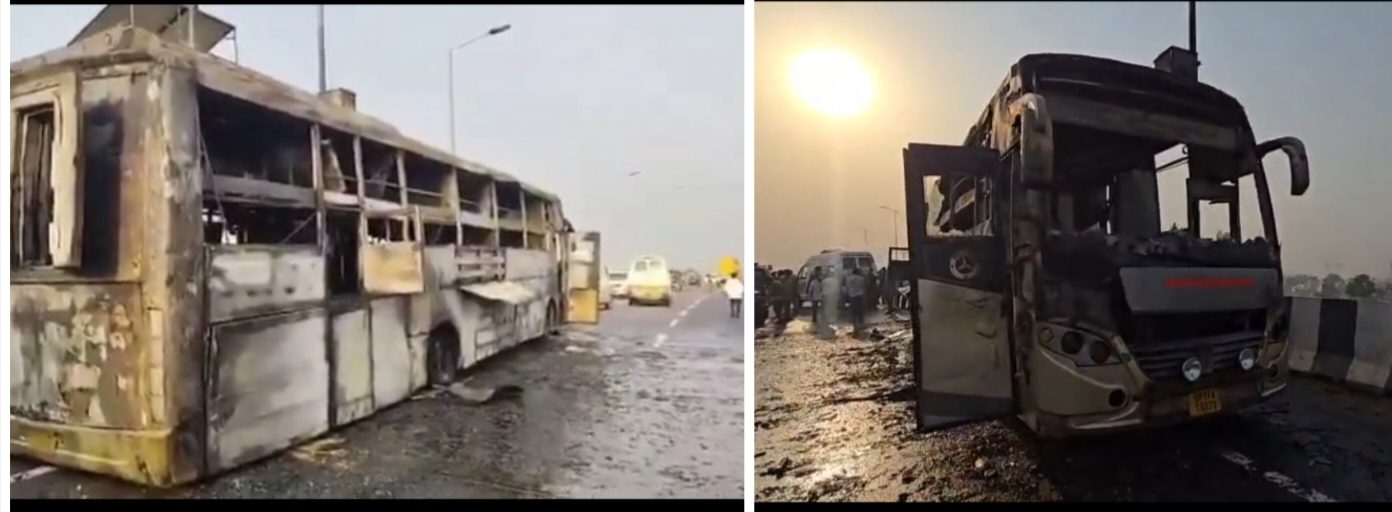 लखनऊ/सर्वोदय:-  राजधानी लखनऊ के मोहनलालगंज कोतवाली क्षेत्र स्थित किसान पथ पर गुरुवार सुबह करीब 5 बजे एक चलती डबल डेकर बस में अचानक भीषण आग लग गई। हादसा इतना भयावह था कि कुछ ही मिनटों में बस आग का गोला बन गई और पांच लोगों की जिंदा जलकर दर्दनाक मौत हो गई। मरने वालों में दो मासूम बच्चे भी शामिल हैं।