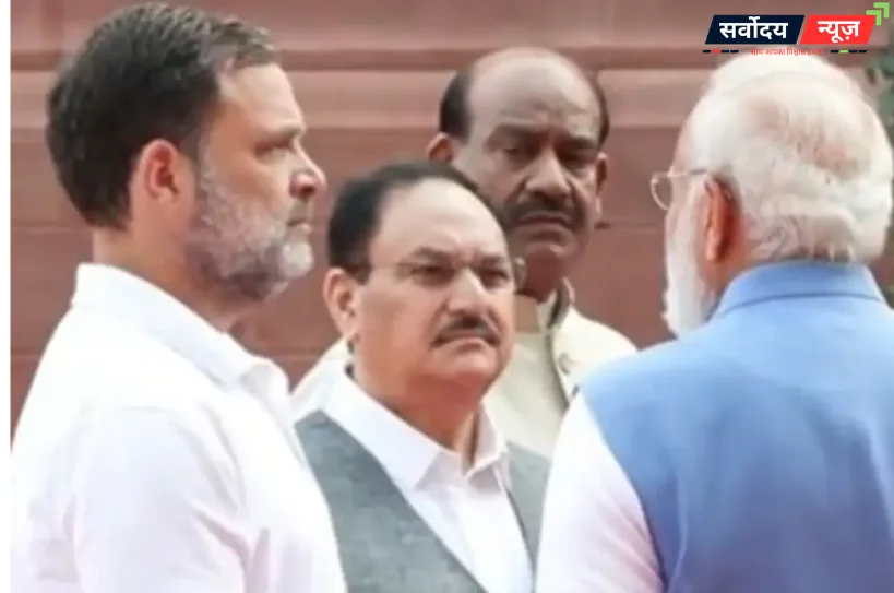 नई दिल्ली/सर्वोदय न्यूज़: संसद भवन परिसर से एक दिलचस्प वीडियो सामने आया है, जिसमें प्रधानमंत्री Narendra Modi और कांग्रेस सांसद Rahul Gandhi आमने-सामने बातचीत करते नजर आ रहे हैं। आमतौर पर राजनीतिक मंचों पर एक-दूसरे पर तीखे हमले करने वाले इन दोनों नेताओं की यह मुलाकात सोशल मीडिया पर तेजी से वायरल हो रही है।