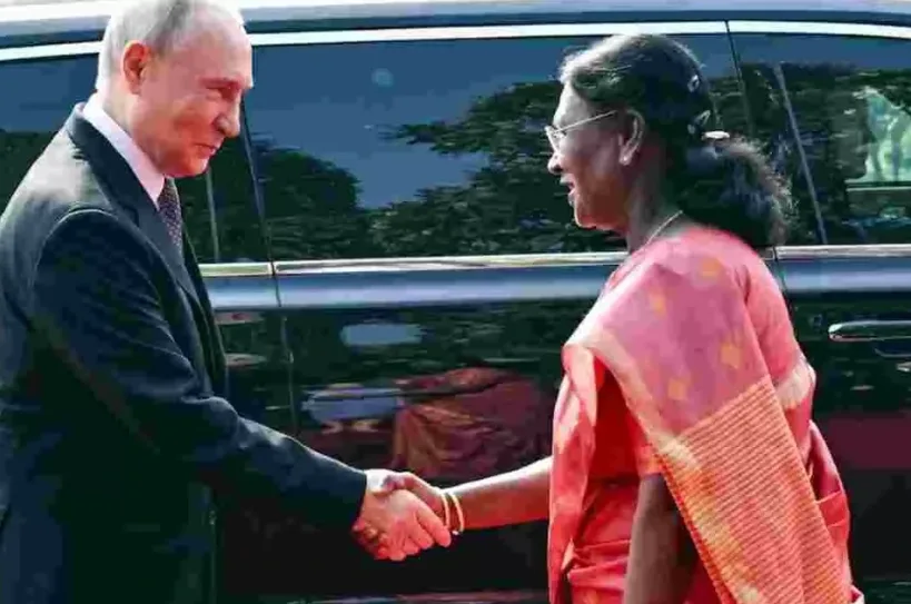 न्यूज़ डेस्क/सर्वोदय न्यूज़:- रूस के राष्ट्रपति व्लादिमीर पुतिन भारत दौरे पर हैं, जहां उनका स्वागत राष्ट्रपति भवन में पूरे राजकीय सम्मान के साथ किया गया। इसी दौरान सामने आया एक वीडियो सोशल मीडिया पर तेजी से वायरल हो रहा है। वजह—पुतिन ने निर्धारित प्रोटोकॉल से हटकर राष्ट्रपति द्रौपदी मुर्मू और प्रधानमंत्री नरेंद्र मोदी से पहले एक भारतीय अधिकारी से हाथ मिलाया।