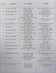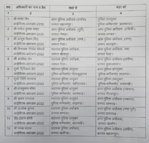 - गोंडा पूर्वी ASP मनोज कुमार रावत → ASP दक्षिणी, संभल